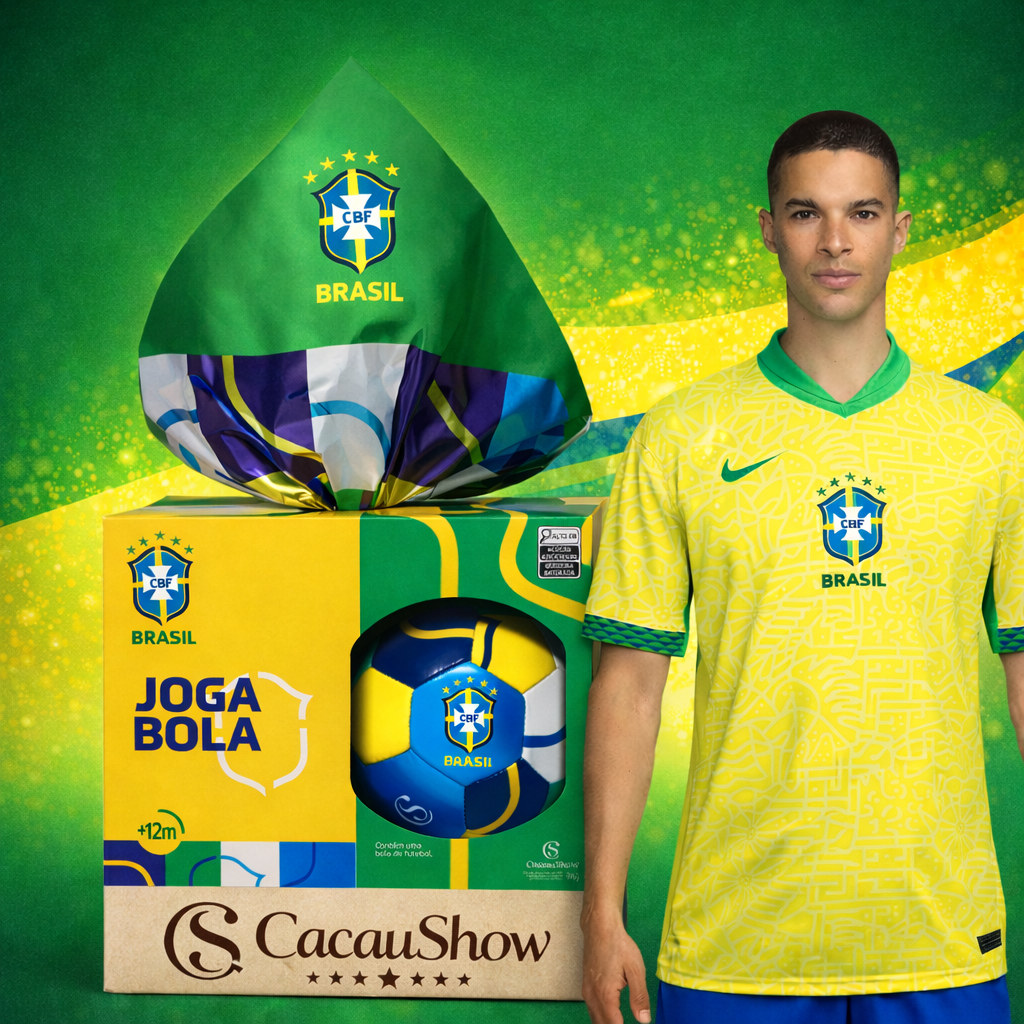 Ovo de Páscoa Cacau Show Bola CBF Hexa Seleção Brasil 170g + Camisa Nike Brasil I 2024/25 Torcedor Pro